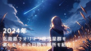 北海道の秋の夜、オリオン座流星群が空を美しく彩るよ。この記事では、オリオン座流星群が一番きれいに見えるタイミングや、最適な観測場所、向きについて詳しく紹介するね。観測の準備を整えて、2024年のオリオン座流星群を最大限に楽しもう!2024年...